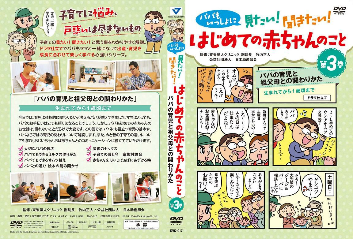 他の画像を見る パパもいっしょに 見たい!聞きたい! DVDはじめての赤ちゃんのこと 第1巻(26分) 通常販売価格 ¥ 20,900 のところ ¥ 18,810 税込 プレパパのための実践的な育児情報やママへのサポートなど、育児生活の手助けになるDVD教材が登場しました! カートに入れる お気に入りに登録する