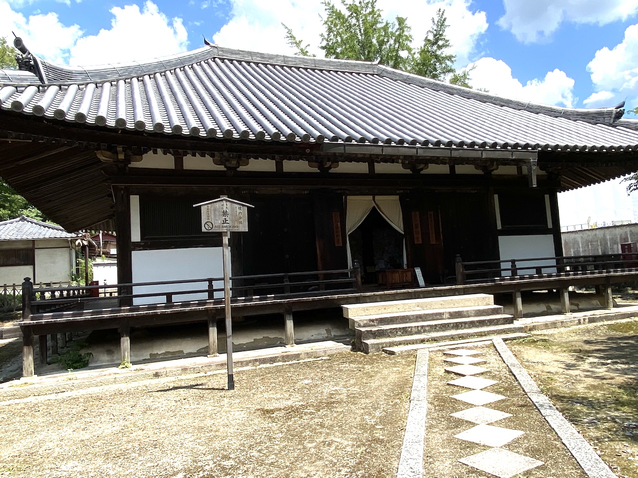 法界寺は真言宗醍醐派の古刹で、弘仁13年(822)に藤原家宗が天台宗の開祖である最澄作の薬師如来をお祀りしたのがはじまりとされる。日野富子で知られる日野家の菩提寺で、西国薬師霊場第三十八番の札所でもある。阿弥陀堂と阿弥陀如来は国宝、薬師堂、薬師如来、日本最古という天人壁画は重要文化財指定。