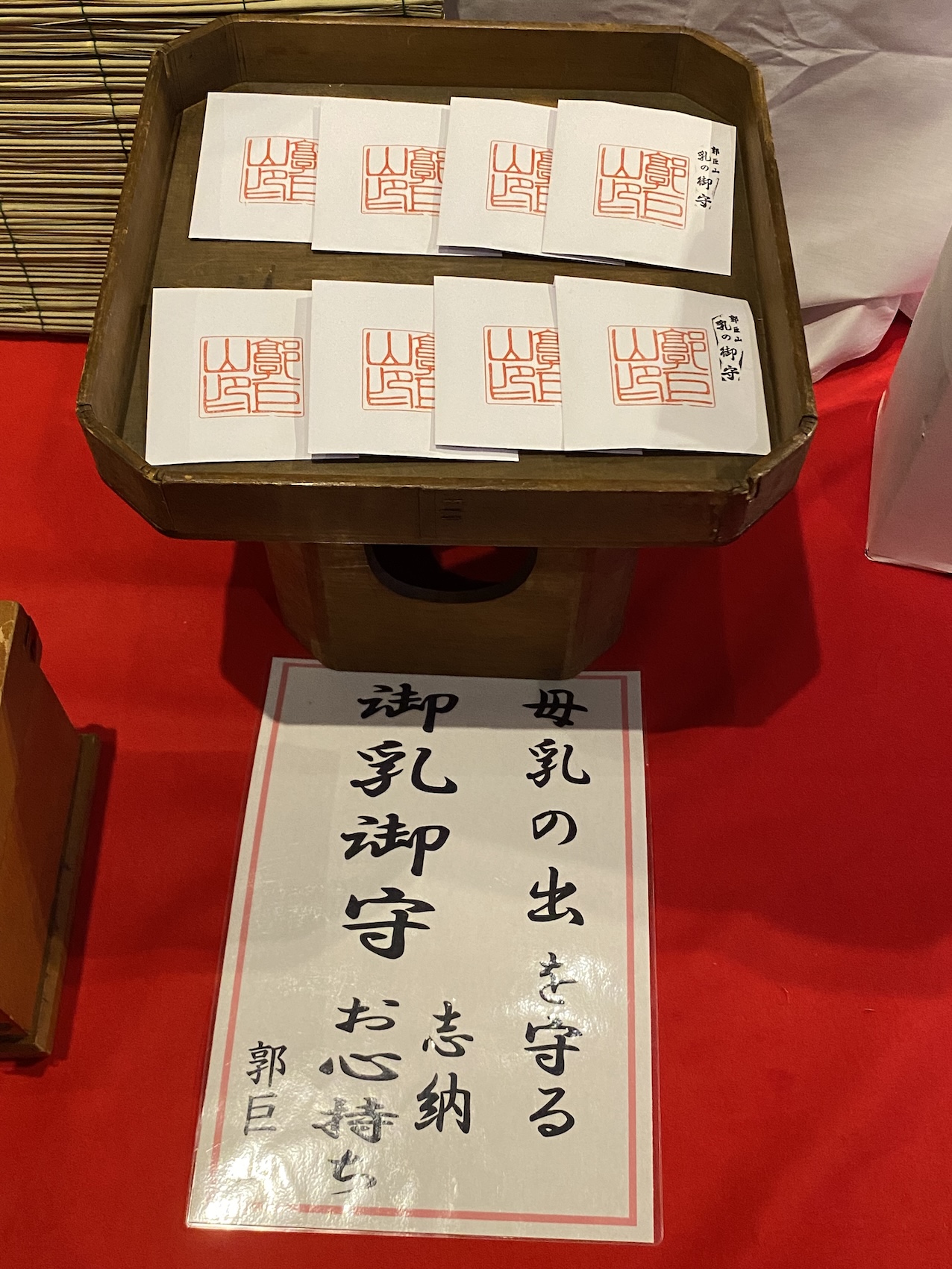 また「母乳の出を守る」郭巨山の「お乳御守」が、粽(ちまき)、手ぬぐい、扇子などとともに、毎年会所飾りの期間中のみ会所神前で授与される。