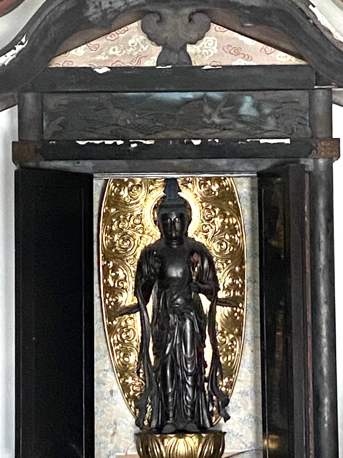 綾部市の郊外の閑静な場所にある佛南寺境内に、聖観世音菩薩を祀る観音堂がある。元禄年間に建設されたといわれ、元は佛南寺とは少し離れた場所にある善住寺という尼寺にあった。伝によれば「聖徳太子の念持仏として鳥佛子(師)一刀三礼の彫刻鐫(せん)する所にして開帳佛なり」とある。善住寺廃寺に伴い平成9年(1997)に今の場所に移転され、綾部西国観音霊場の第七番札所とのこと。