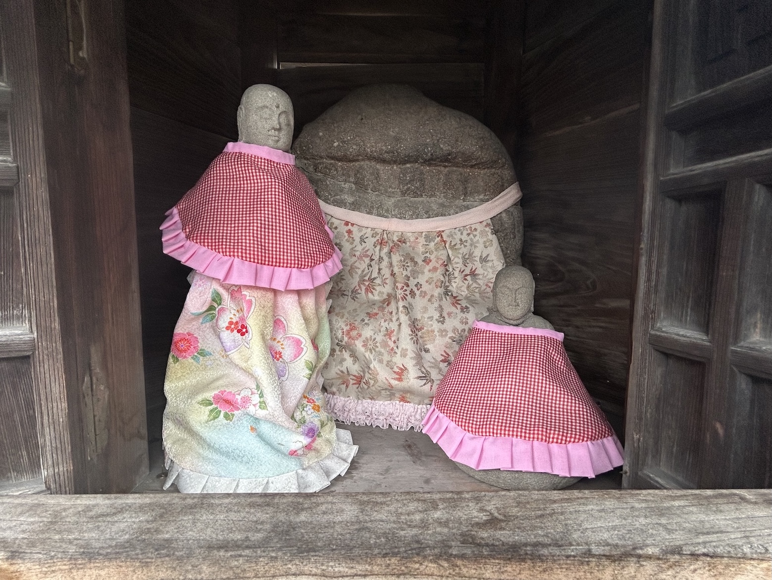 小さな池の中央に六角形の地蔵堂がある。中には3体の石地蔵が祀られ、祠の前には乳房のような丸い石が置かれている。現地案内板に、このお地蔵さまは「母乳の地蔵尊」で、欲しいと祈願すればたちまち乳が授けられること、不要になった場合は「お預け」に行けば止まると、乳預け祈願についても記載されている。