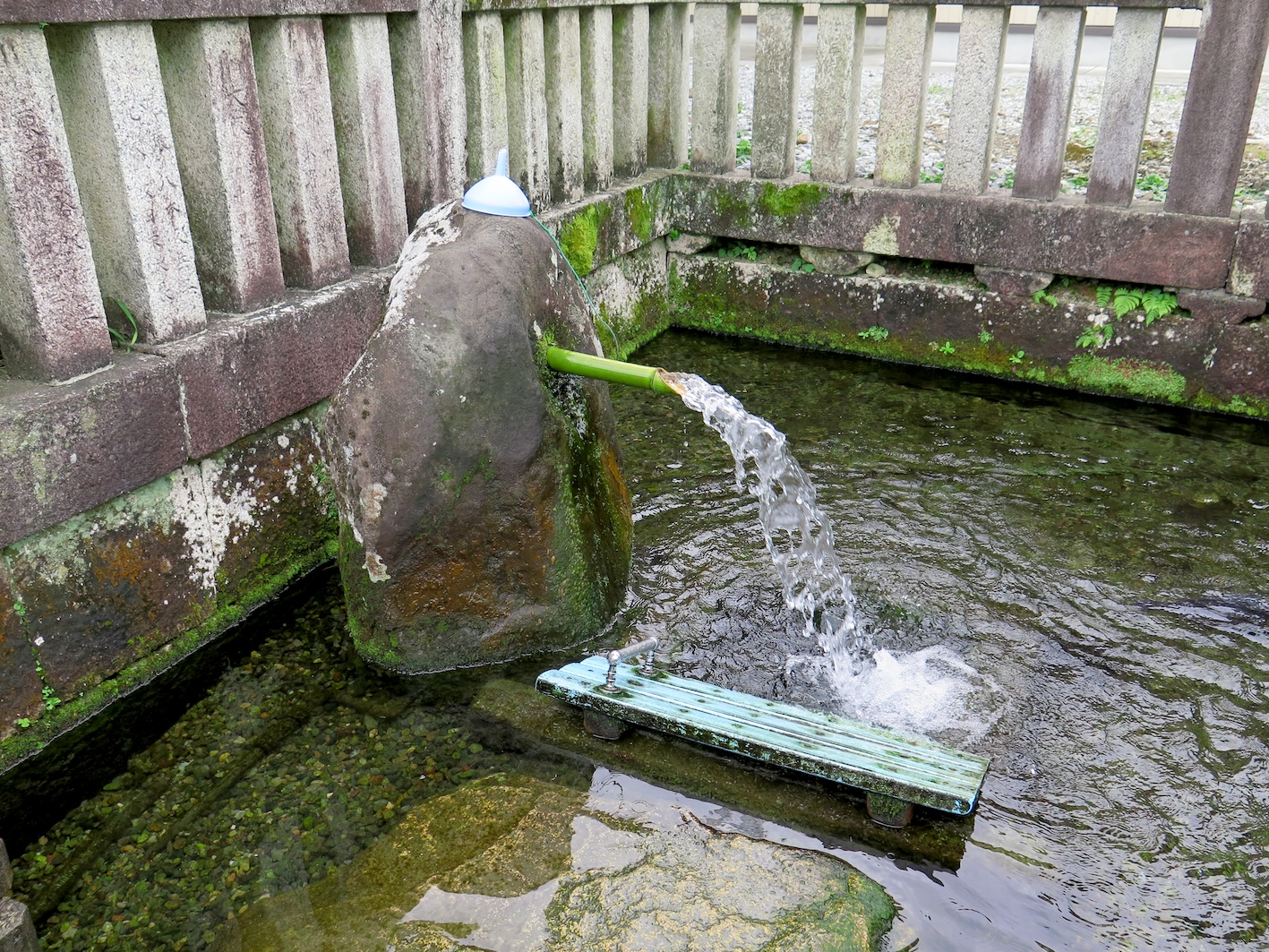 地域の人たちによって管理され、飲用として人気があるようだ。湧出量が減少してきており、現在は地下水をポンプで汲み出して流しているとのこと。
