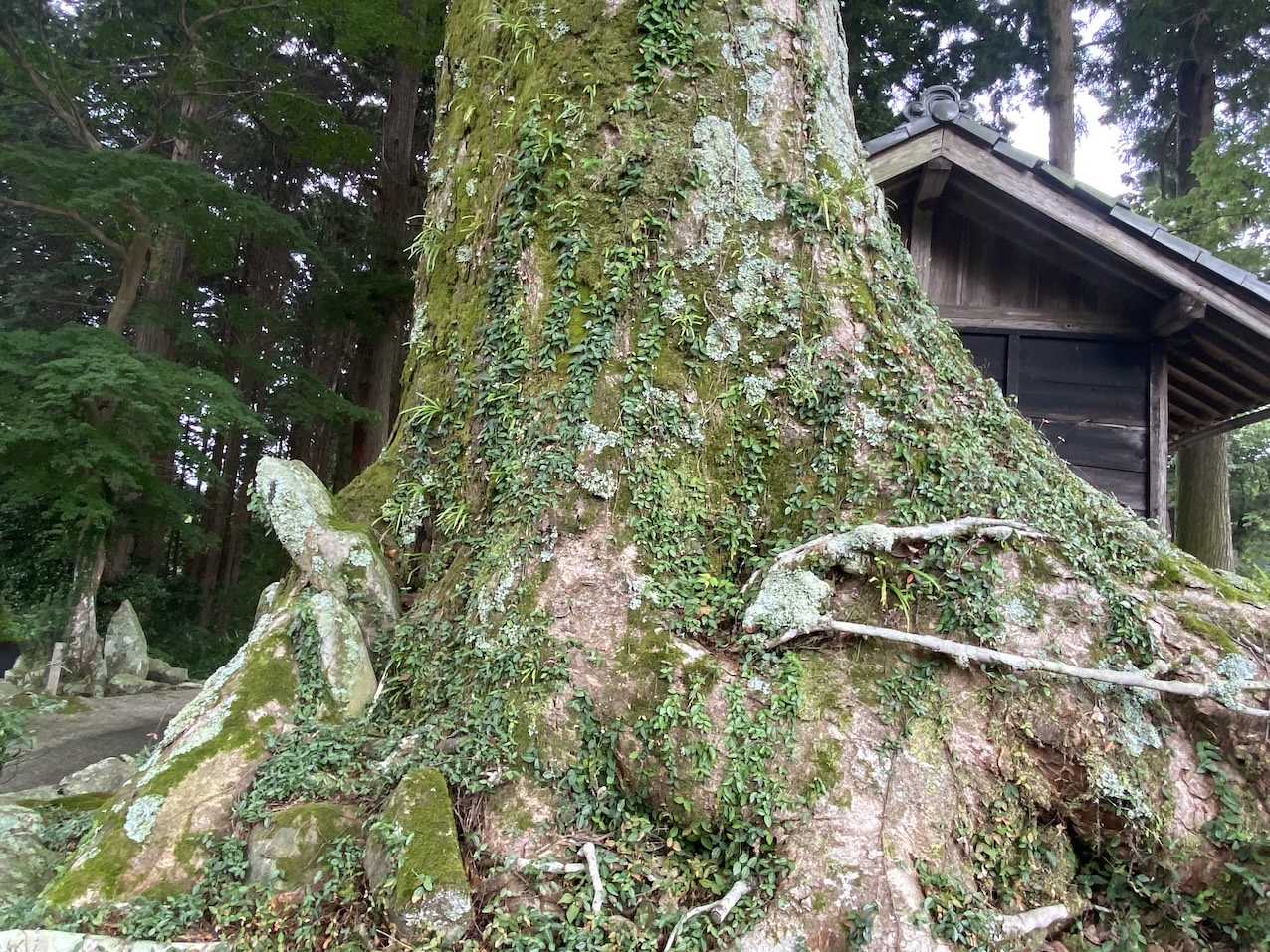 そばのケヤキは、環境省巨樹巨木林データベースによれば、樹高18m、目通り幹周3. 6mとあり、地上から少し上のところに石を巻き込んでいる。昔薬師堂のそばにあった石を村の庄屋が庭石にしようと持ち帰ったところ、夜中に石が「帰りたい」と言うので元に戻したところ、欅が巻き込んだという話も『北勢町風土記』に紹介されている。