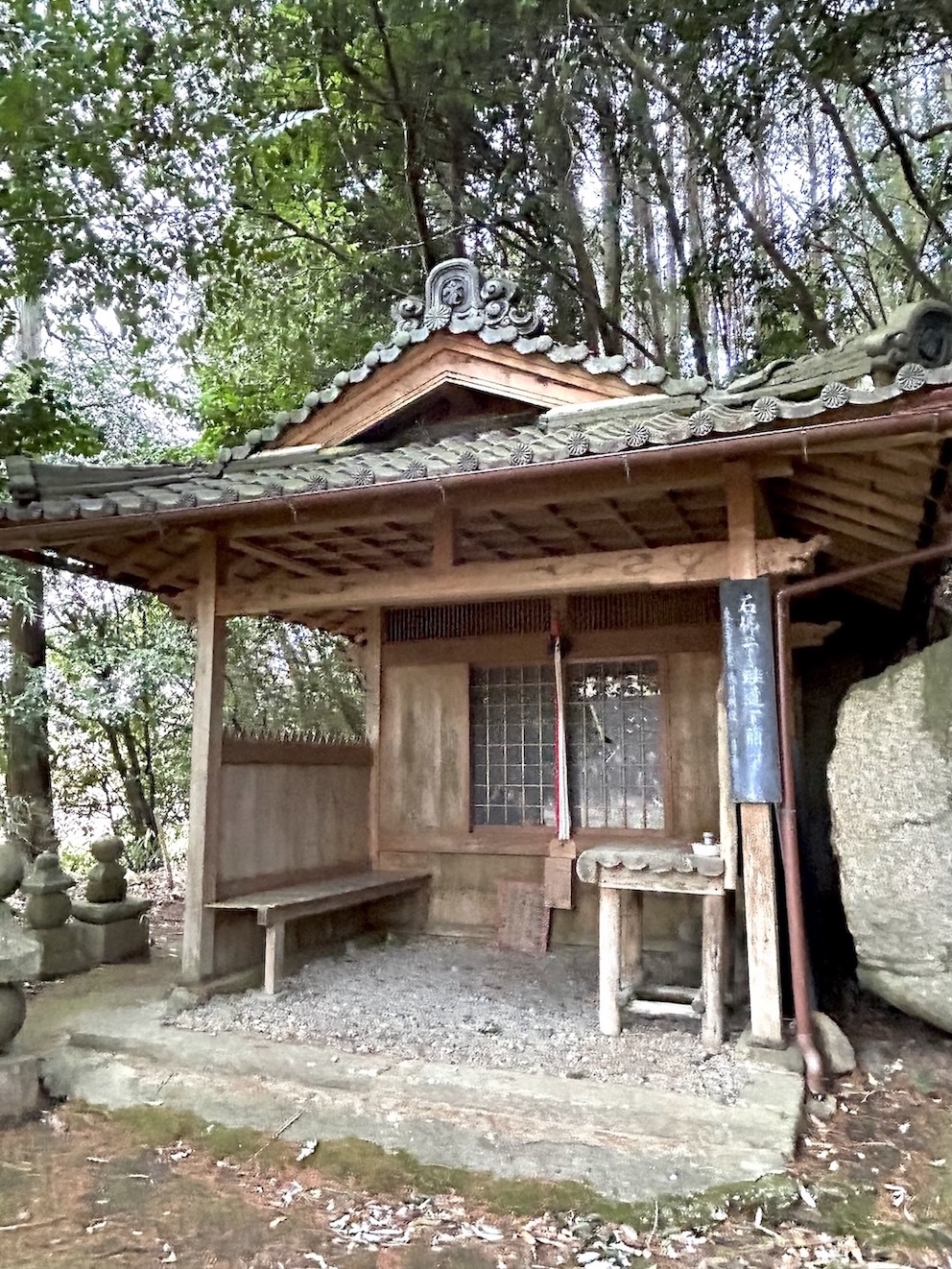 集落のはずれ、道路から階段を降りたところに小さなお堂がある。地元の女性に乳のご利益のある薬師堂と聞くと、すぐそこですよと案内してくれた。