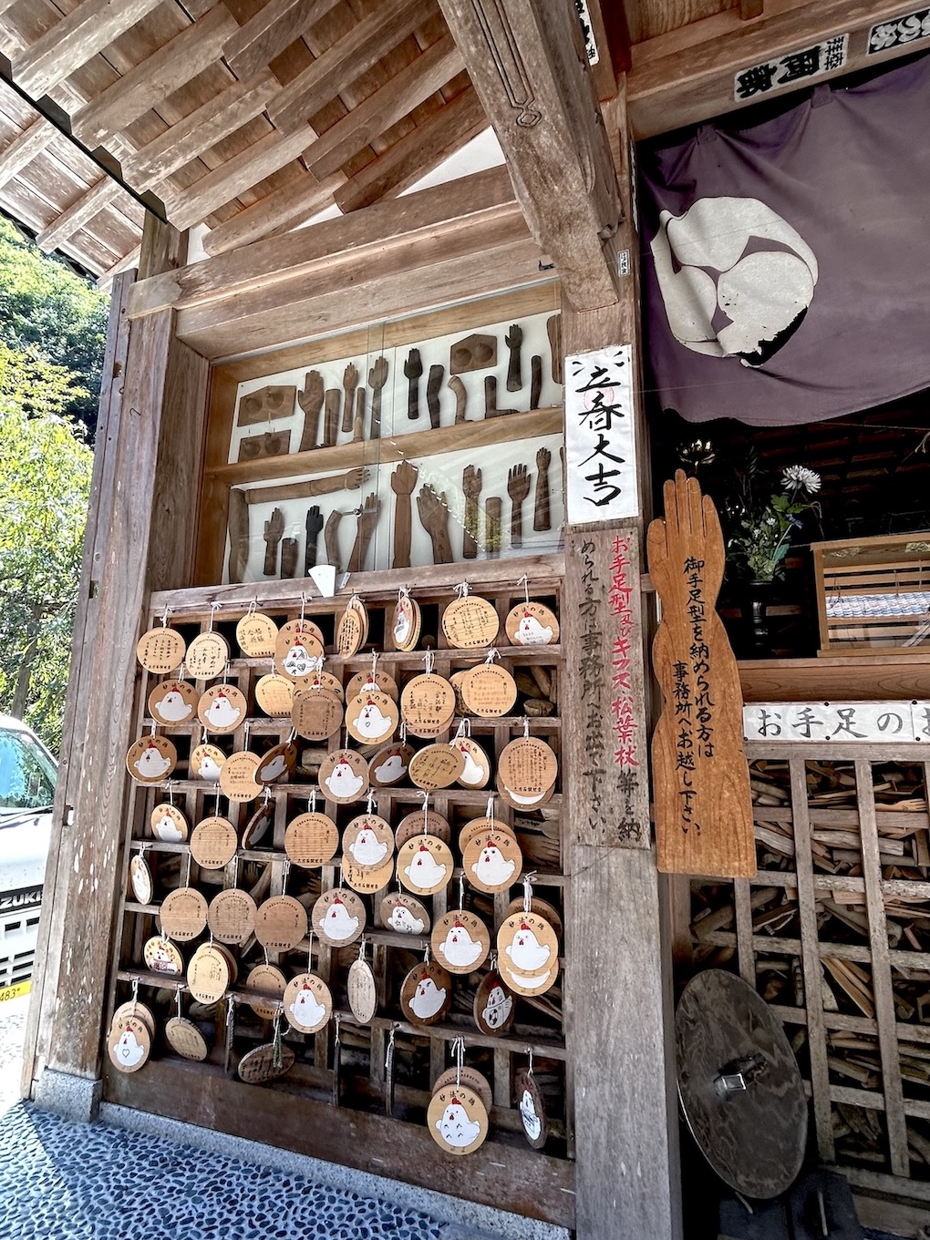 三方石観世音(みかたいしかんぜおん)は手足の不自由をなくすというご利益で有名だが、手足のみならず首から下の悪い部分を治すというご利益もあるという。観音堂の隣にある御手足堂には木製の手足が無数に奉納されているが、中に木製*の乳房の形をしたものもある。