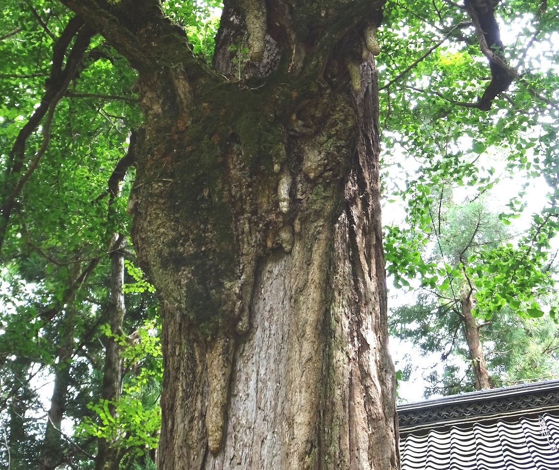若狭姫神社は安産育児に霊験があることで知られる神社。境内に「乳神さま」と呼ばれているイチョウがある。樹下に乳の形の瘤が垂れていることから「乳の木」と称し、祈願すれば豊かな乳を授かると深い信仰を集めていますと、神社の現地案内板に記載がある。この神社には他に千年スギといわれる大スギや、ムクノキなど、いずれも幹周が5〜6mという大木があり、これらの社叢は福井県指定有形文化財。古社の落ち着いた雰囲気がある。