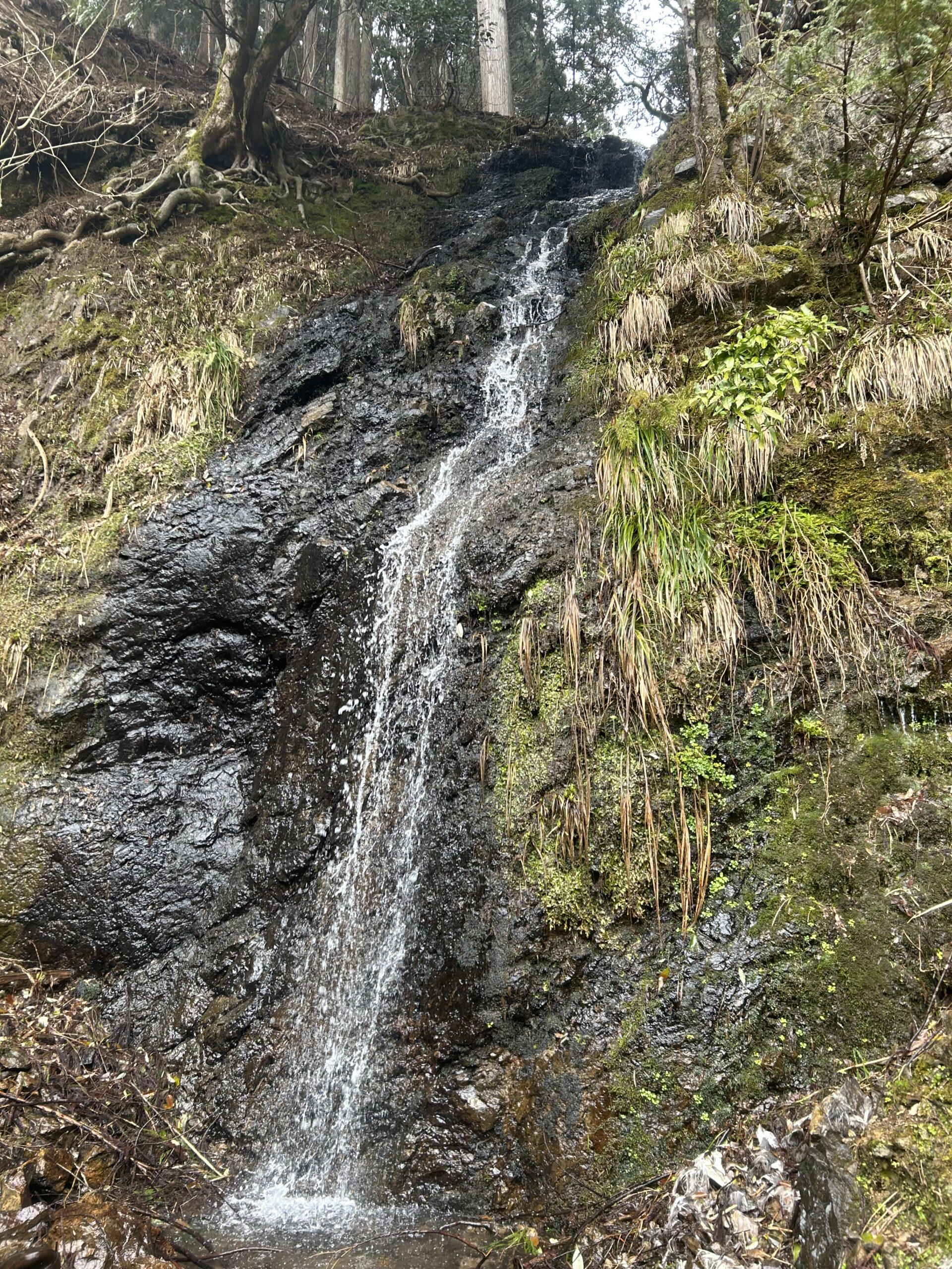 現在は間に害獣よけの柵ができて、開けてもらわないとアクセスできないが、拝殿を向かって左の奥に進むと高さ15mほどの立派な滝がある。また拝殿の天井の方々に三角形の乳型を束ねたものや丸い立体乳型絵馬が多数吊り下げられている。